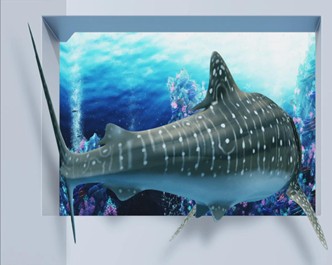 今回、「ティラノサウルス:ラボ編」と同時に、3Dビジョンネットワーク動画の第一弾「ジンベイザメ:回遊編」も新たに博多