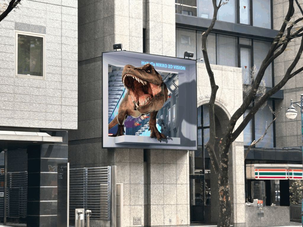 大型2面3D LEDビジョン「博多日光3Dビジョン」において当ビジョンのオリジナル3D動画「ティラノサ